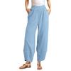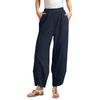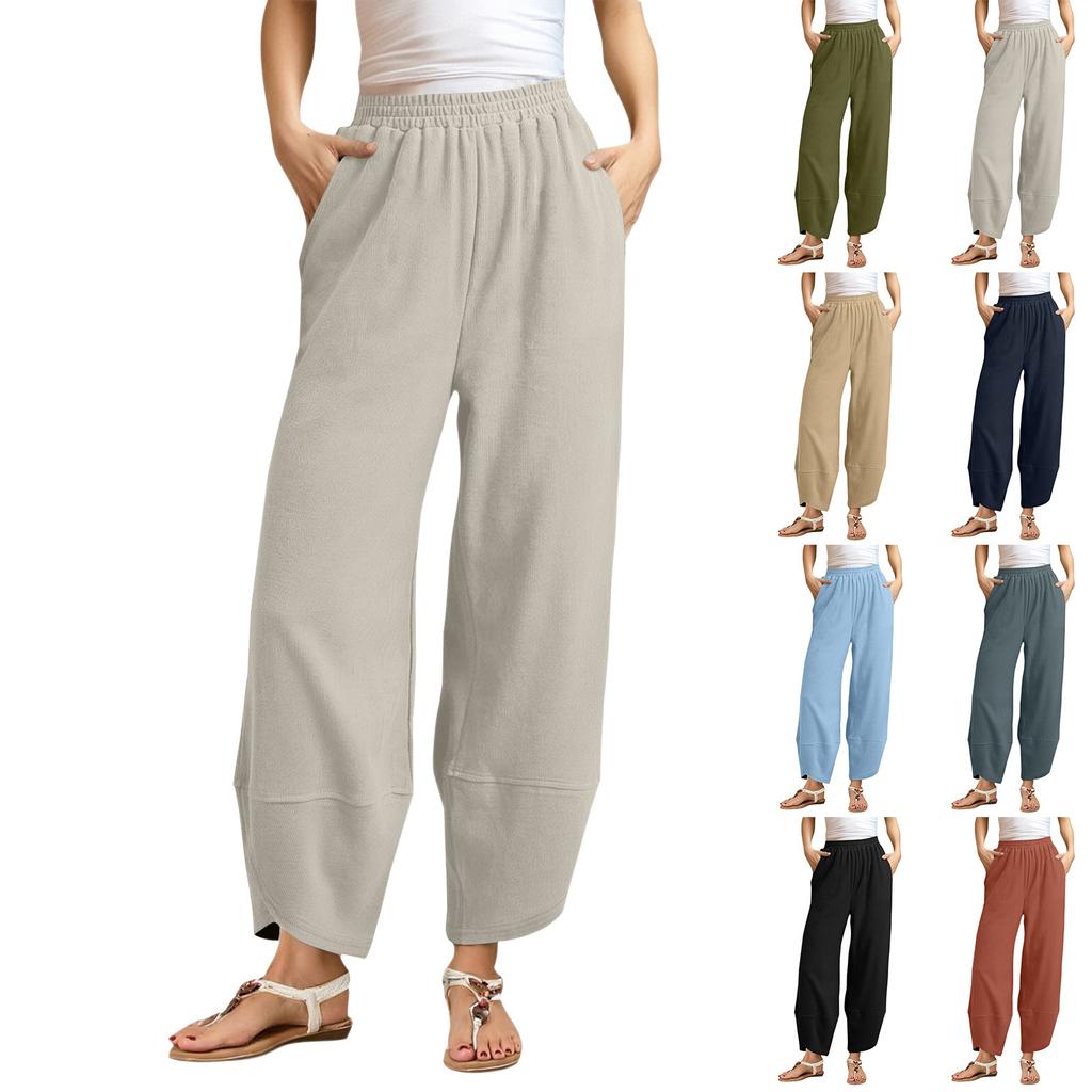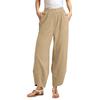 Damen Schräge Tasche Elastischer Bund Cropped Hose Lässige Baumwoll- und Leinenhose