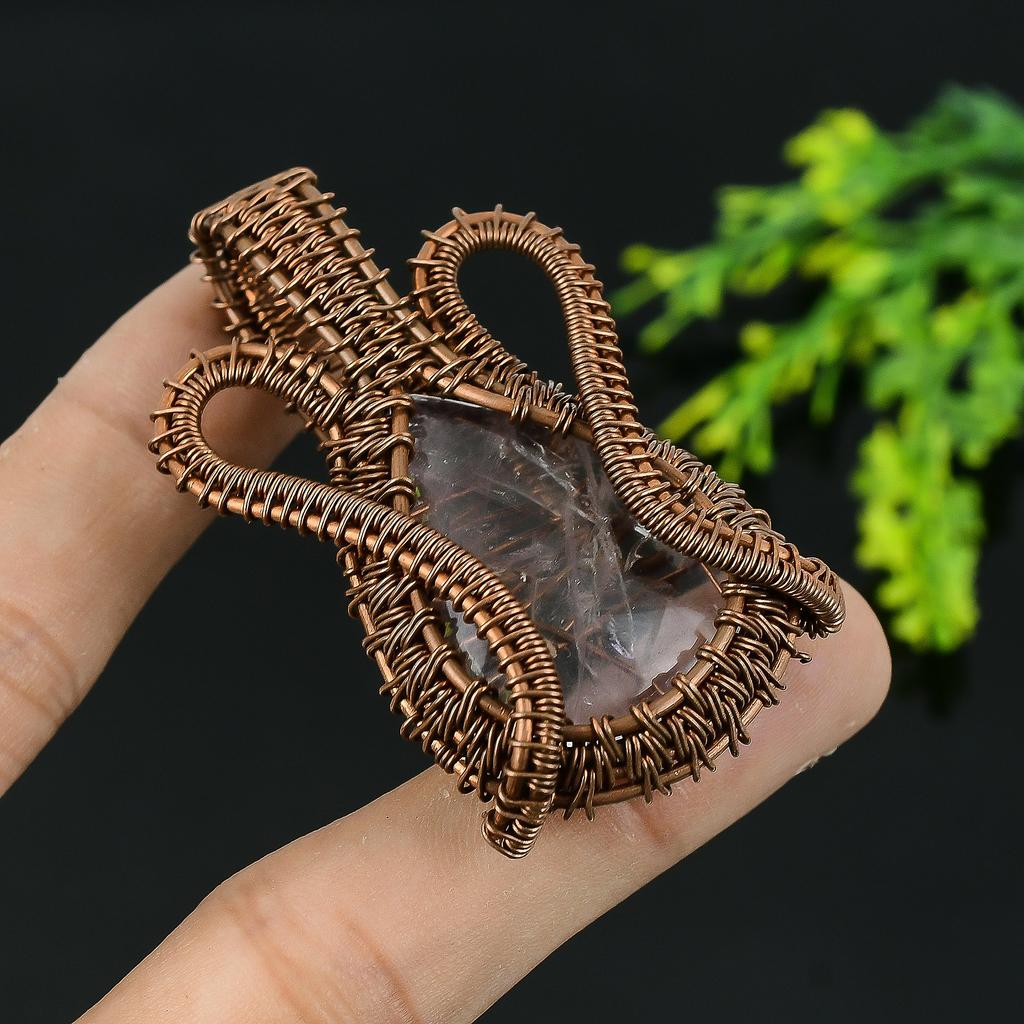 Rosenquarz Handgefertigter Kupferdraht Wickel Schmuck Anhänger 2.25 j7A40