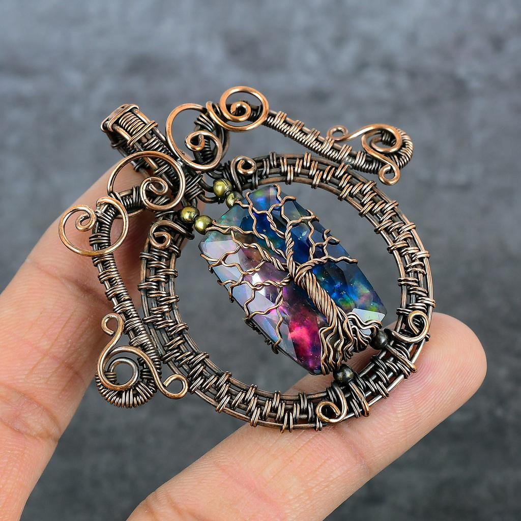 Mystic Topaz Handmade Copper Wire Wrap Jewelry Pendant 2.56" A0b34