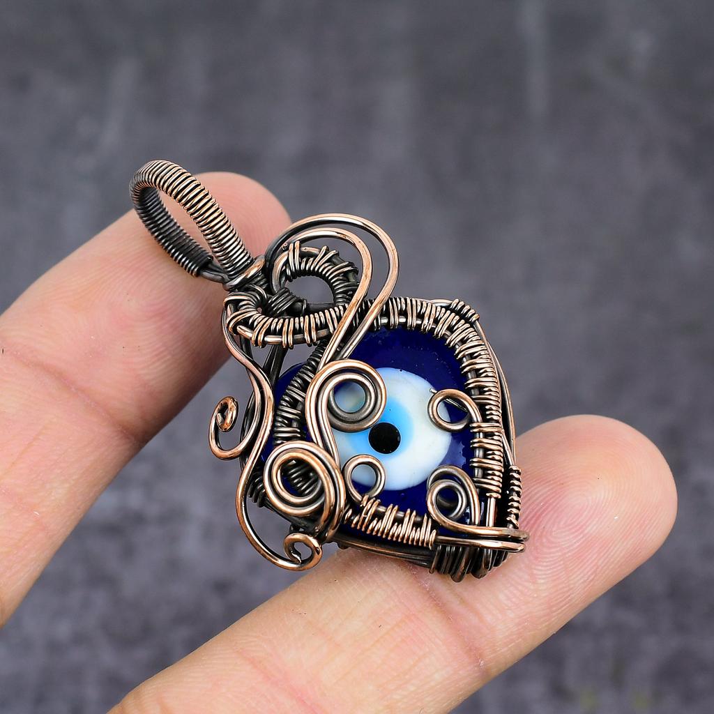 Blaues Böses Auge Handgefertigter Kupferdraht-Wickel Schmuck Anhänger 2.05" O2p74