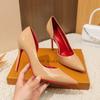 2025 neue sexy französische dünne Absätze spitze Lackleder atmungsaktive Seite Luft flacher Mund schwarz rutschfest rotsohlige High Heels