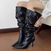 High Heel Stiefel Damen Herbst 2024 Frühling und Herbst Stiefel Spice Girls Spitzabsätze Über Knie Weitschaftstiefel Pile Stiefel