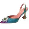 2024 Neue Farbverlauf Regenbogen 3D Sandalen Sonnenschnalle Strass Pantoletten Weinglasabsatz Mode Damenschuhe