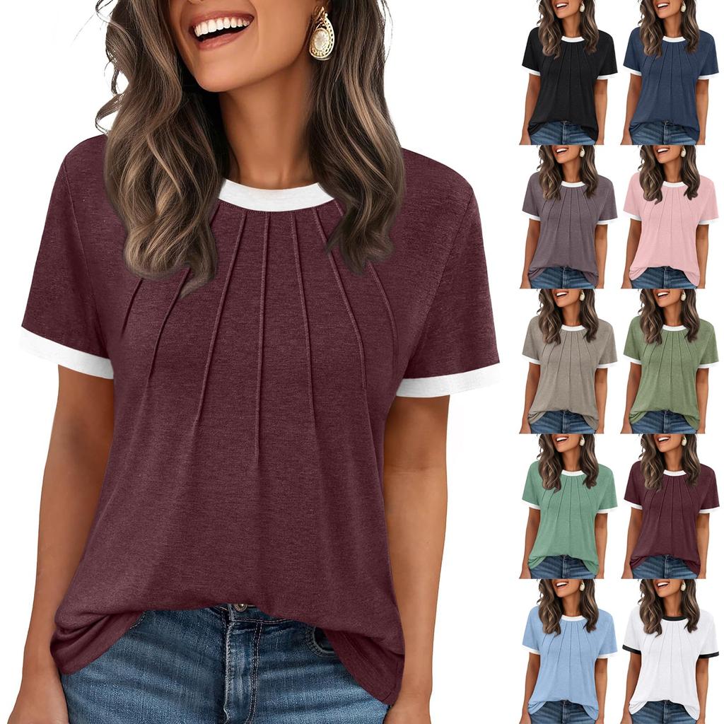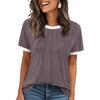Women's Fashion Solid Color Round Neck Loose Short Sleeved Pullover T-shirt Top