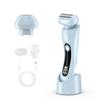 【100% IPX7 Waterproof Wet & Dry Shaving】After large amounts of waterproof quality test, does works fine on wet shaving in the shower, and it also gives smooth shave if you want a quick dry shaving. This women electric razor is whole body washable, you can easily take off the shaving heads and flush it under running water. The small brush will help thorough residuals cleaning. This womens shaver is compact and portable design, you can enjoy comfortable shaving at anytime and anywhere.