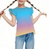 Kinder Freizeit Kurzarm Plissee, Niedliches Farbverlauf Bedrucktes Rundhals Einfarbiges Oberteil