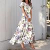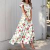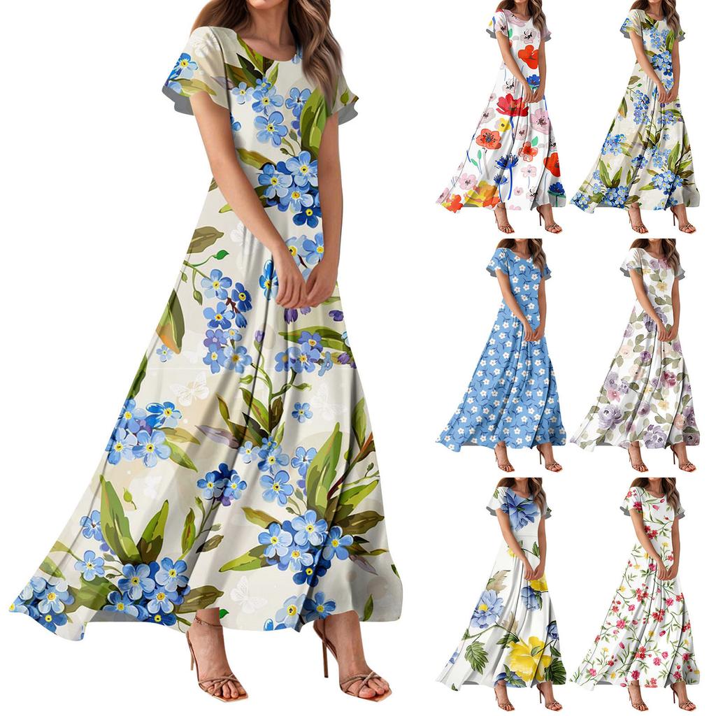 Damenkleid mit Hawaii-Print, lässig, Rundhalsausschnitt, kurzärmelig, hohe Taille