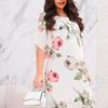 Mode Chiffon Druckkleid Damen Locker Rundhals Sommer Outfit