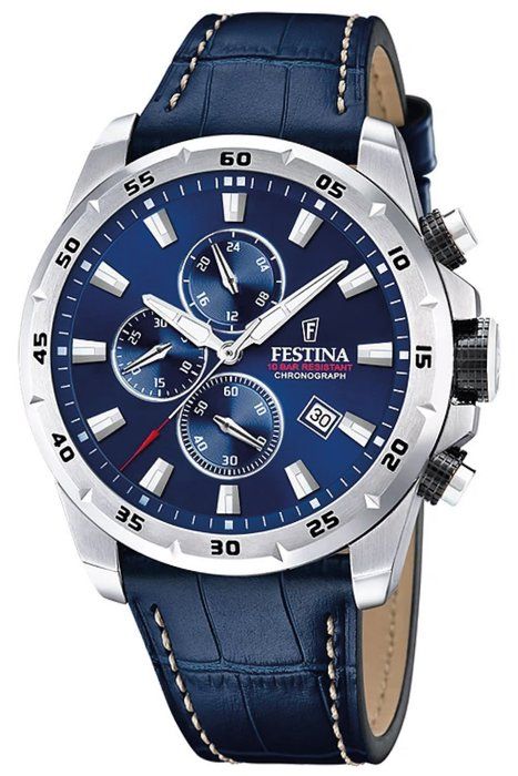 Montre - Homme - F20692/2 - Chronographe - Acier inoxydable - Cuir bleu