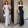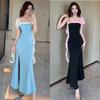 2025 Spring/Summer Elegant Slit Fishtail Tube Top Evening Gown - High-End Sexy Banquet & Wedding Dress with Floor-Length Suspender Design