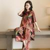 2024 Sommer Damen Retro Print Zweiteiliger Anzug: Modische Bluse mit lockerer Passform und Hose mit weitem Bein