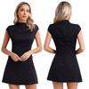 Entworfen mit Rundhalsausschnitt, Flügelärmeln, hoher Taille und taillierter A-Linien-Silhouette, einlagig, einfarbig und Reißverschluss auf der Rückseite.