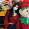 Minimalistischer Square-Kragen Off-Shoulder Langarm Crop Strickpullover für Damen - Frühherbst-Stil