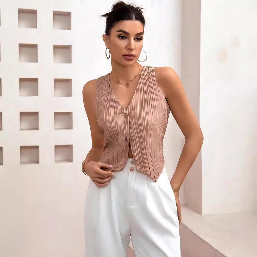 Entdecken Sie die perfekte Mischung aus Eleganz und Vielseitigkeit mit dieser ärmellosen Damen-Strickweste mit V-Ausschnitt.. Diese Weste aus hochwertigem Polyester ist so konzipiert, dass sie sowohl Komfort als auch Stil bietet.. Sein einfarbiges Muster und seine elegante Silhouette machen es zu einem idealen Layering-Teil für jede Gelegenheit.. Dieser Cardigan-Weste ist für die modebewusste Frau geeignet und eine unverzichtbare Ergänzung für Ihre Garderobe. Er lässt sich mühelos mit einer Vielzahl von Outfits kombinieren und sorgt für einen schicken, modernen Look.