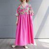 Kurzarm Plus Size Baumwolle Vintage Blumenmuster Neu in Kleidern für Damen lässig locker langes Sommerkleid
