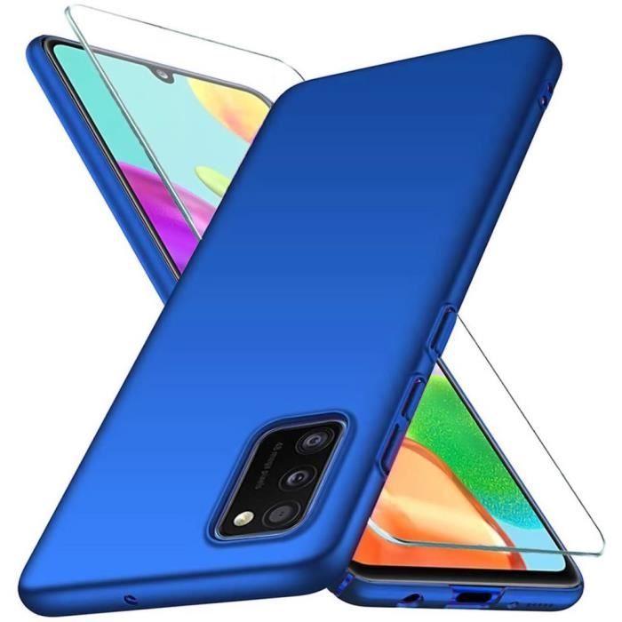 Coque de protection - BOOLING - pour Samsung Galaxy A41 - Silicone premium - Lot 2 verres trempés - Bleu uni