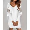 Herbst Neuer Stil V-Ausschnitt Langarm Bedrucktes Spitzen-Stickerei Kleid Damen
