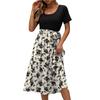 Midikleider Damen Blumendruck Patchworkkleid Kurzarm Rundhals Bequemes Alltagspartykleid