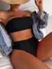 Sexy trägerloser rückenfreier Bikini 2-teiliges Set Damen einfarbig geteilter Badeanzug hohe Taille Strandbikini 2025 neue Sommer-Bademode Bikini-Set