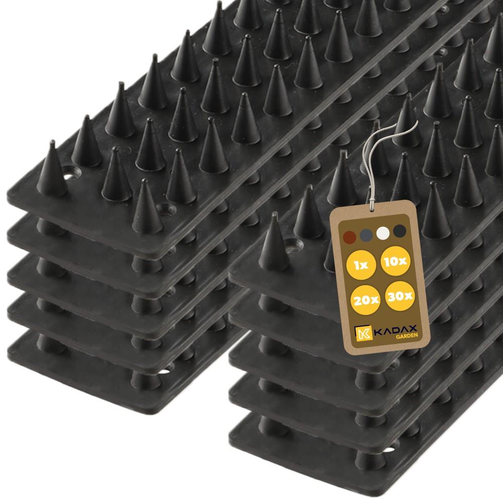 Plastikspitzen gegen Vögel, Spikes für Vögel, Spikes für TaubenMöchten Sie nicht mehr die Verschmutzungen auf dem Balkon reinigen, die von Tauben und anderen Vögeln verursacht werden? Möchten Sie Ihre Pflanzen vor Katzen und Mardern schützen? Hast du verschiedene Methoden ausprobiert, aber keine hat den erwarteten Effekt gebracht? Wir haben für Sie eine wirksame Lösung, nämlich Kunststoffspikes gegen Vögel und Tiere.. Leisten mit dichten Stacheln befreien Sie von geflügelten Eindringlingen: Tauben, Stare, Elstern, Spatzen und anderes Geflügel. Darüber hinaus sichern sie effektiv Fensterbänke, Balkone und Gesimse nicht nur vor Vögeln, sondern auch vor Nagetieren.. Überprüfen Sie, warum es sich lohnt, unsere Spikes zu wählen!Leiste mit Spikes – wirksame Hilfe bei der Bekämpfung von Vögeln und TierenKunststoffspikes sind eine wirksame Lösung zur Abschreckung von Vögeln und anderen Tieren. Dank ihnen werden Vögel schnell aufhören, sich auf Ihren Balkon oder Ihr Fensterbrett zu setzen, und Sie werden endlich aufatmen können.. Woraus resultiert ihre Wirksamkeit? Die angebotenen Leisten haben dicht angeordnete Stacheln, die sowohl kleinen als auch großen Vögeln keine Möglichkeit zur Landung und zum Verweilen bieten.. Darüber hinaus eignen sie sich auch zum Schutz von Zäunen, Mauern und Fensterbänken vor Katzen, Mardern und Eichhörnchen.. Strapazierfähige Kunststoffspikes für Vögel und TiereSuchen Sie einen dauerhaften Schutz vor Vögeln? Dichte Spikes für Vögel und Tiere sind aus strapazierfähigem Kunststoff gefertigt. Das verwendete Material macht sie widerstandsfähig gegen Beschädigungen und ungünstige Wetterbedingungen. Darüber hinaus müssen Sie sich keine Sorgen um ästhetische Aspekte machen, da die angebotenen Vogelabwehrspitzen aus UV-beständigem Kunststoff gefertigt sind.. Sie verlieren ihre Farbe nicht unter Sonneneinstrahlung und werden Ihnen lange nicht nur dienen, sondern auch gut aussehen. Einfach zu montierende Spikes für Tauben und andere Vögel Unsere Plastikspikes gegen Vögel sind sehr einfach zu montieren.. Sie können sie mit Klebstoff oder Kabelbindern an Balkongeländern befestigen.. An Holzgeländer mit Schrauben (Die Spikes haben spezielle Löcher, die die Montage erleichtern.). Wenn Sie sie jedoch auf Kunststoff- und Metalloberflächen montieren möchten, verwenden Sie dafür einen speziellen Klebstoff.. Vogelabwehrgeräte schützen effektiv Oberflächen wie: Handläufe, Geländer, Überrinnenbleche, Holzbalken, Vordächer, Dächer, Gesimse, Klimaanlagen oder Kassetten. Kunststoffleisten mit Stacheln in mehreren Paketen und Farben. Leisten mit einer Länge von 50 cm und einer Breite von 4,5 cm mit 92 Stacheln in jedem Modul sichern diskret jede Oberfläche.. Sie sind in verschiedenen Farbvarianten erhältlich, die Sie erfolgreich an Ihre Architektur anpassen können.. Wir bieten Leisten mit Spikes in Farben: schwarz, weiß, braun und grau. Darüber hinaus können Sie je nach Flächengröße die Anzahl der Spikes wählen: 1 Stück oder in Packungen zu 10, 20 und 30 Stück. Ausgewählte Pakete können Sie beliebig miteinander kombinieren, um den idealen Schutz vor Vögeln und Tieren zu schaffen.. Wenn du sie ein für alle Mal loswerden willst, dann ist es Zeit für deinen Schritt.. Greifen Sie zu Plastikspikes und vergessen Sie dieses lästige Problem!