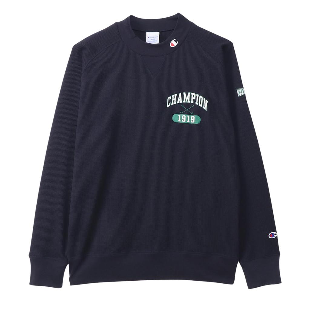 Long Sleeve Long UV Quick Heat Graphic Logo Long Sleeve Mock Neck Golf Navy [Champion] T-Shirt, Sleeve, Protection, Drying, Retention, Print, Shirt,