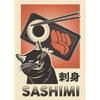 Japanisches Essen Sushi Ramen Sashimi Teriyaki Lustiges Schwarze Katze Poster Niedliches Tier Köstlich Leinwandgemälde Wandkunst Küchendekor