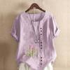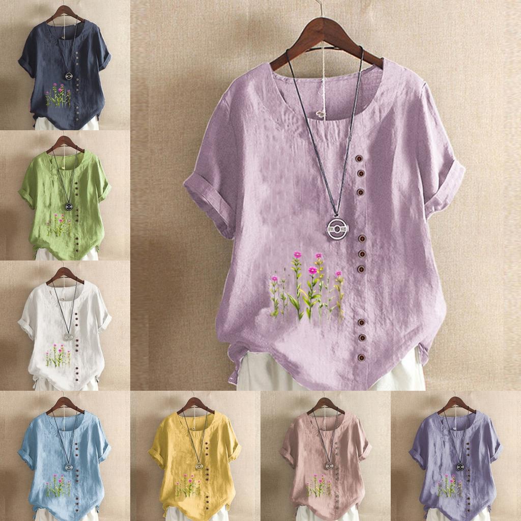 Damenmode Blumendruck Kurzarm T-Shirt Lockeres Baumwollhemd Lässige lockere Sommerbluse Tops Übergröße