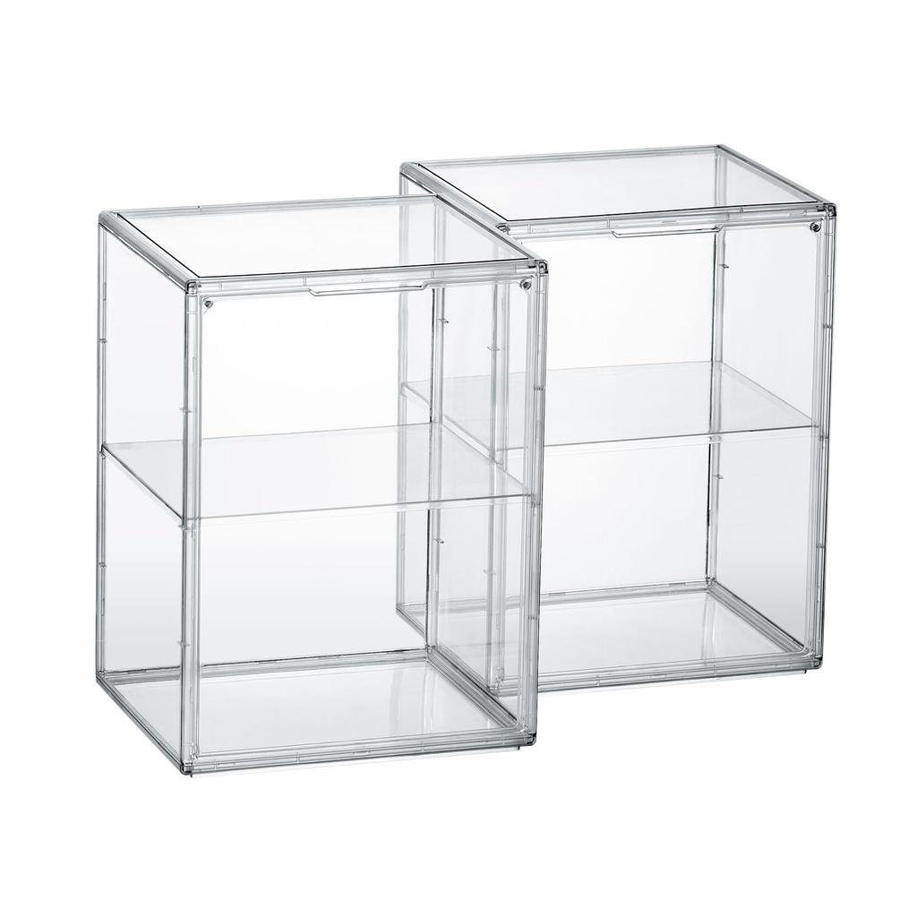 Hachibanya Figure Case Storage Set of 2 Transparent Display Case Magnetic Door Collection Case Stackable Easy to Assemble Width x Depth 25 x Height