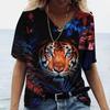 Women's 3D Animal Print Short-sleeved Shirt, Casual and Fashionable V-neck T-shirt