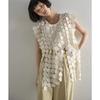 DIMANAF 2025 Neues T-Shirt Damen Strickspitze Weste Ärmellos Lochmuster Sommerstil Basic Tops Locker