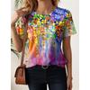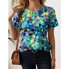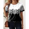 Summer women's T-shirt, fashionable with floral patterns, classic and elegant round neck short sleeved T-shirt, regular round neck T-shirt