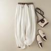 Damen Sommer Locker Einfach Elastischer Bund Baumwolle und Leinen Freizeit Haremshose