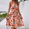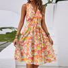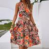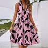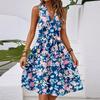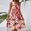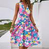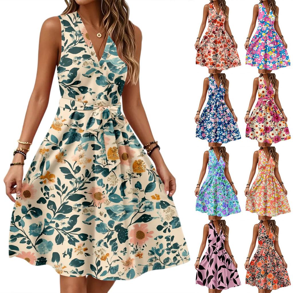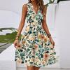 Damen Frühling und Sommer Casual V-Ausschnitt Ärmellose Taille Blumendruck Midikleid