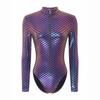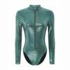 Damen Meerjungfrauenschuppen Einteiliger Badeanzug Langarm Mock Neck Leotard für Poolparty Strandoutfit