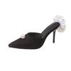 2024 Außenhandel Sommer neue spitze Rückseite leer hohe Absätze Perlenbeutel Kopf dünner Absatz Satin Rose große Größe Hausschuhe
