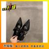 Single shoes 2024 new spring and autumn pointed high heels thick heel Mary Jane French retro small leather shoes single shoes women's shoes