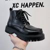 Black retro British style heightened platform Martin boots men's 2024 new western cowboy short boots 86119-A