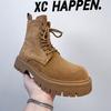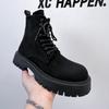 Men's new high-top Martin boots British style thick-soled heightened large-size lace-up velvet medium-top boots Men's 3302-A