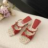 Französische elegante Keilpantoffeln Damen Kopf Temperament Zehen offen Wort mit Schleife hochhackige Sandalen 2025 Sommer neu