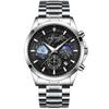 ABORNI Casual Sporty Brand Stainless Steel Band Wristwatches for Men Chronograph Quartz Watches with Date Moon Phase Watches