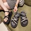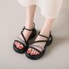 Plateausandalen Damen 2024 Sommer Neu Feenwind Flach Vielseitig Strass Damen Strand Muffin Römische Sandalen