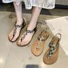 Herringbone toe sandals for women's summer flat-bottomed students 2025 new models are good to match the Korean version of Roman beach rhinestone pinch