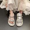 Bow thick bottom cover toe cool slippers women's outer wear 2025 summer new fashion muffin rhinestone slippers