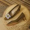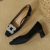 Square head high heels thick heel 2025 new spring and autumn mid-heel niche trendy shoes shallow mouth rhinestone square buckle French single shoes