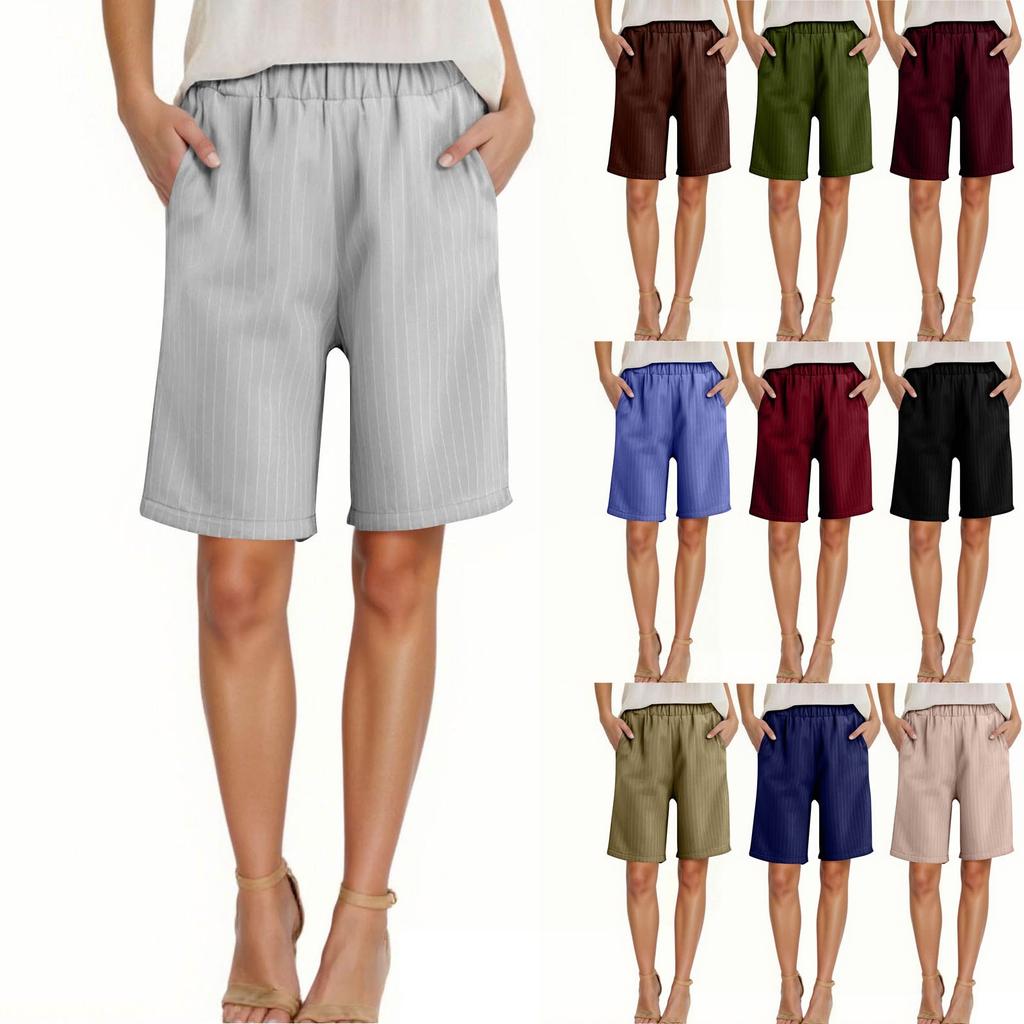 Damen Hohe Taille Einfarbig Freizeithose Trainingshose 1/2 Shorts