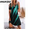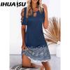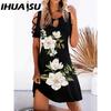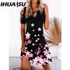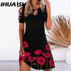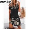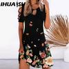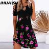IHUASU 13 Farben Damen Kleid mit Blumenmuster Sommer Sexy Kurzarm O-Ausschnitt Mini Kleider Weiblich Vintage Elegantes Kleid