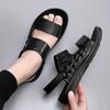 2024 Sommer Echtes Leder Schuhe Herren Sandalen Flach Rutschfest Weich Urlaub Herrensandalen Dicke Sohle Herrenschuhe Reines Schwarz D074