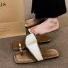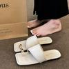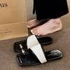 Sandalen mit Metallspitze außen 2025 Sommer neu eckige Zehenpartie Urlaub Strandschuhe Farbabstimmung Retro-Stil flache Pantoletten