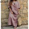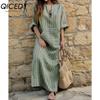 QICED S-5XL Damen Frühling Sommer Kleidung Übergröße Damen Baumwolle Leinen Locker Gestreift Langes Kleid mit Taschen