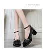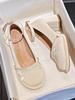 Mary Jane high heels women's 2024 new summer one-word buckle French retro versatile temperament thick heel single shoes